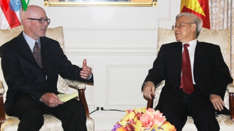 (VOV5) - Chiều 01/04, tại Trụ sở Trung ương Đảng, Tổng Bí thư Ban chấp hành Trung ương Đảng Cộng sản Việt Nam Nguyễn Phú Trọng tiếp Đoàn đại biểu cấp cao Đảng Cộng sản Mỹ do Chủ tịch John Bachtell dẫn đầu, sang thăm và làm việc tại Việt Nam.