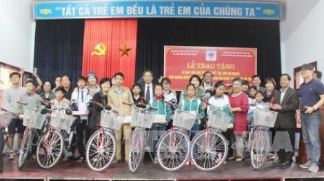 (VOV5) - Đoàn trao tặng 43 chiếc xe đạp cho học sinh mồ côi của các huyện Lệ Thủy, Quảng Ninh, Bố Trạch, thành phố Đồng Hới và trẻ em làng SOS Đồng Hới.