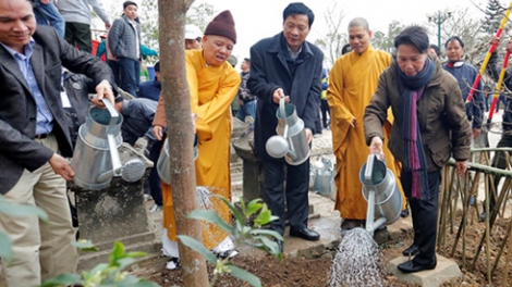 Phó Chủ tịch Quốc hội Nguyễn Thị Kim Ngân trồng cây mai vàng tại khu di tích Yên Tử, tỉnh Quảng Ninh