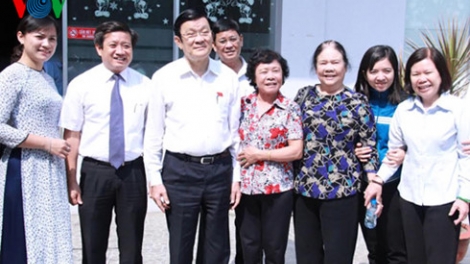 Chủ tịch nước Trương Tấn Sang tiếp xúc cử tri quận 1 và quận 3, thành phố Hồ Chí Minh