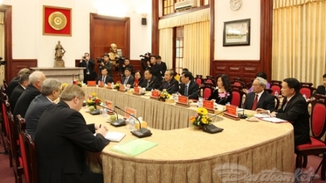 (VOV5) - Nhận lời mời của Chánh án Tòa án nhân dân tối cao Trương Hòa Bình, Đoàn đại biểu cấp cao Tòa án tối cao Liên bang Nga do Chánh án Vyacheslav Mikhailovich Lebedev làm Trưởng đoàn sang thăm và làm việc tại Việt Nam.