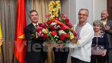 (VOV5)- Tại thủ đô Kiev, Đại sứ quán Việt Nam tại Ukraine ngày 19/01 tổ chức buổi gặp mặt thân mật kỷ niệm 50 năm ngày thành lập Hội Hữu nghị Ukraine-Việt Nam và nhân dịp Tết Bính Thân 2016.