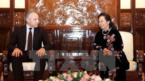 (VOV5)- Sáng 24/11, tại Phủ Chủ tịch, Phó Chủ tịch nước Nguyễn Thị Doan tiếp Đoàn đại biểu cấp cao Liên hiệp Công đoàn Belarus do Chủ tịch Mikhail Orda dẫn đầu đang thăm làm việc tại Việt Nam.