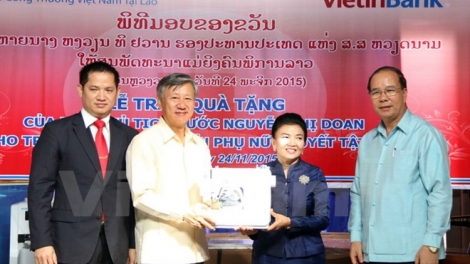 (VOV5)- Sáng 24/11, tại thủ đô Vientiane, Đại sứ Việt Nam tại Lào Nguyễn Mạnh Hùng trao quà tặng của Phó Chủ tịch nước Nguyễn Thị Doan cho Trung tâm Phát triển phụ nữ khuyết tật Lào.