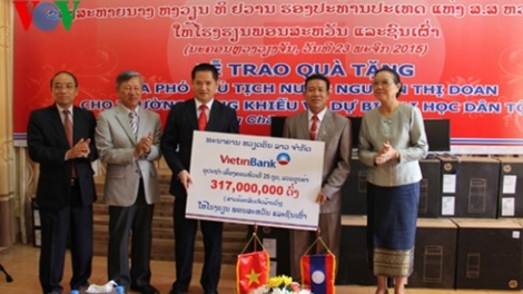 Trao quà tặng của Phó Chủ tịch nước Nguyễn Thị Doan cho học sinh Lào