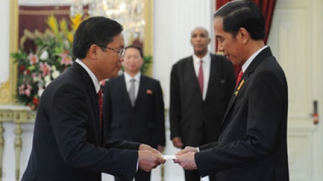 (VOV5) - Hôm qua (13/11), Đại sứ nước Việt Nam tại Cộng hòa Indonesia Hoàng Anh Tuấn trình thư ủy nhiệm của Chủ tịch nước Trương Tấn Sang lên Tổng thống Joko Widodo.