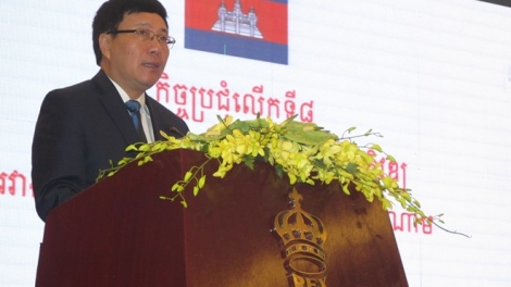 (VOV5) - Tại Thành phố Hồ Chí Minh diễn ra phiên họp toàn thể Hội nghị Hợp tác và phát triển các tỉnh biên giới Việt Nam - Campuchia lần thứ 8 dưới sự đồng chủ trì của Phó Thủ tướng, Bộ trưởng Bộ Ngoại giao Việt Nam Phạm Bình Minh và Phó Thủ tướng, Bộ trưởng Bộ Nội vụ Campuchia Samdech Krolahom Sar Kheng.