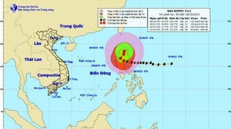 (VOV5) - Dự báo trong 24 giờ tới, bão Koppu di chuyển chậm theo hướng Bắc Tây Bắc, mỗi giờ đi được khoảng 5km.