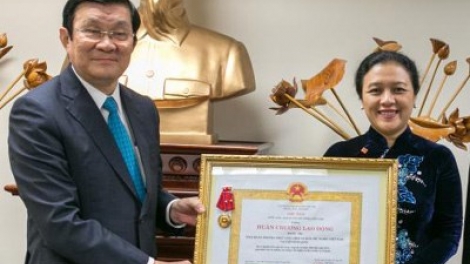 Chủ tịch nước Trương Tấn Sang trao huân chương lao động cho phái đoàn Việt Nam tại Liên hiệp quốc