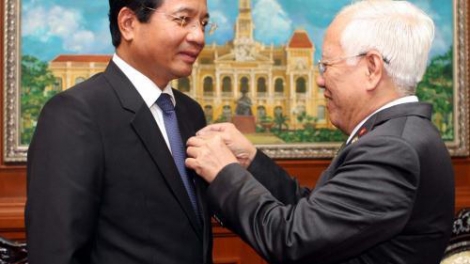 Trao tặng Huy hiệu Thành phố Hồ Chí Minh cho Đại sứ CHDCND Lào tại Việt Nam