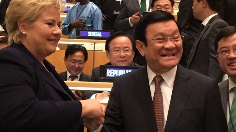 (VOV5) - Tại cuộc tiếp xúc nhân dịp tham dự Hội nghị Thượng đỉnh Liên hiệp quốc tại New York, Hoa Kỳ, Chủ tịch nước khẳng định Việt Nam coi trọng phát triển quan hệ hữu nghị hợp tác với Na Uy, một trong những nước có nhiều đóng góp, hỗ trợ Việt Nam trong công cuộc đổi mới và hội nhập.
