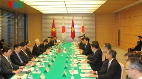 (VOV5) - Nhận lời mời của Thủ tướng Nội các Nhật Bản Shinzo Abe, Tổng Bí thư Ban Chấp hành Trung ương Đảng Cộng sản Việt Nam Nguyễn Phú Trọng và Đoàn đại biểu cấp cao Việt Nam đã đến thủ đô Tokyo, bắt đầu chuyến thăm chính thức Nhật Bản.
