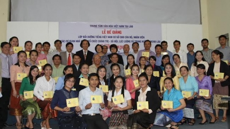 (VOV5) - Chiều 15/09 tại trụ sở Trung tâm văn hóa Việt Nam ở thủ đô Viêng chăn (Vientine)-Lào, diễn ra Lễ bế giảng lớp bồi dưỡng tiếng Việt cơ sở cho cán bộ, nhân viên các cơ quan nhà nước, tổ chức chính trị xã hội, lực lượng vũ trang nước CHDCND Lào.
