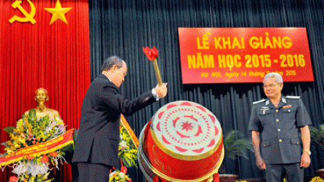 (VOV5) - Chủ tịch Uỷ ban Trung ương Mặt trận Tổ quốc Việt Nam Nguyễn Thiện Nhân dự lễ khai giảng với thầy và trò Học viện Phòng không - không quân thuộc Quân chủng Phòng không - Không quân.