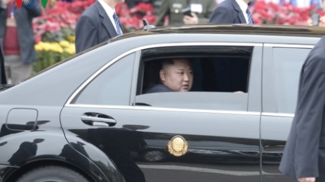 (VOV5) - Sáng nay (26/2), đoàn tàu bọc thép đặc biệt của Triều Tiên chở Chủ tịch Kim Jong-un đã đến ga đường sắt quốc tế Đồng Đăng - Lạng Sơn. 8h45, đoàn xe hộ tống Chủ tịch Kim Jong-un xuất phát về Hà Nội.