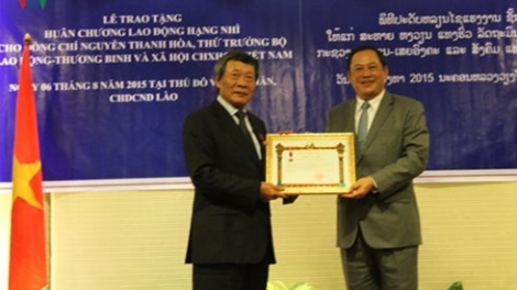 Lào trao Huân chương Lao động cho Thứ trưởng Bộ Lao động-Thương binh và Xã hội Việt Nam