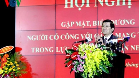(VOV5) - Chủ tịch nước Trương Tấn Sang tham dự hội nghị gặp mặt và biểu dương người có công với cách mạng tiêu biểu trong lực lượng Công an nhân dân.