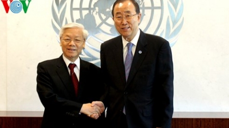 Tổng Bí thư Nguyễn Phú Trọng thăm trụ sở LHQ và hội kiến với Tổng thư ký Liên hợp quốc Ban Ki Moon
