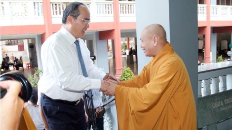 Chủ tịch UBTW Mặt trận Tổ quốc Việt Nam Nguyễn Thiện Nhân thăm và chúc mừng Giáo hội Phật giáo