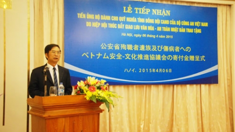 (VOV5) - Ngày 6/4, Bộ Công an Việt Nam tiếp nhận số tiền 50 nghìn USD ủng hộ “Quỹ Nghĩa tình đồng đội Công an nhân dân” do Hiệp hội thúc đẩy giao lưu văn hóa và an toàn của Nhật Bản trao tặng.