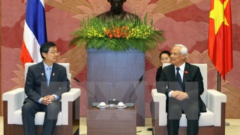 (VOV5) - Chiều 29/3, tại Nhà Quốc hội, Phó Chủ tịch Quốc hội Uông Chu Lưu tiếp Phó Chủ tịch Hội đồng Lập pháp Thái Lan Surachai Liengboonlertchai sang thăm Việt Nam và dự Đại hội đồng IPU-132.