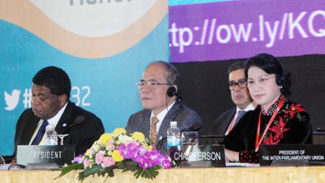 (VOV5) - Trước thềm phiên khai mạc Đại hội đồng Liên minh Nghị viện quốc tế lần thứ 132 (IPU 132), sáng 28/3, tại Trung tâm Hội nghị quốc gia diễn ra Hội nghị Nữ nghị sỹ lần thứ 21. Chủ tịch Quốc Hội Nguyễn Sinh Hùng; Phó chủ tịch Quốc hội Nguyễn Thị Kim Ngân, Chủ tịch IPU Saber Chowdhury,Tổng thư ký IPU ngài Martin Chungong cùng 200 nữ nghị sỹ IPU dự hội nghị.