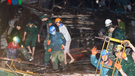 (VOV5) - Liên quan vụ sập giàn giáo tại công trường Formosa - Hà Tĩnh xảy ra tối 25/3, trong thời tiết mưa phùn và gió lạnh, lực lượng cứu hộ Hà Tĩnh đã thức trắng đêm để cùng cán bộ, công nhân Tập đoàn Sam Sung đưa tất cả công nhân bị thương đi cấp cứu.