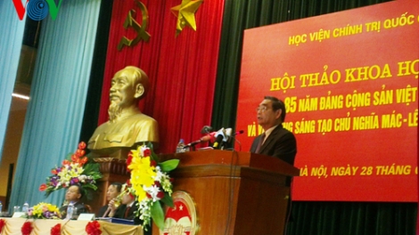 (VOV5) - Hội thảo do Học viện Chính trị Quốc gia Hồ Chí Minh phối hợp với Văn phòng Trung ương Đảng, Ban Tuyên giáo Trung ương, tổ chức sáng nay, tại Hà Nội. Tại hội thảo, các đại biểu tiếp tục khẳng định: Một trong những nhân tố đặc biệt quan trọng quyết định sự lớn mạnh và trưởng thành của Đảng là Đảng cộng sản Việt Nam luôn phát triển và vận dụng sáng tạo chủ nghĩa Mác-Lênin và thực tiễn Việt Nam.