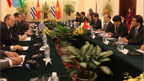 (VOV5) - Chủ tịch Quốc hội Nguyễn Sinh Hùng và Chủ tịch Hạ viện Cộng hòa Đông Uruguay Anibal Pereyra hội đàm và ký kết thỏa thuận hợp tác giữa hai cơ quan lập pháp.
