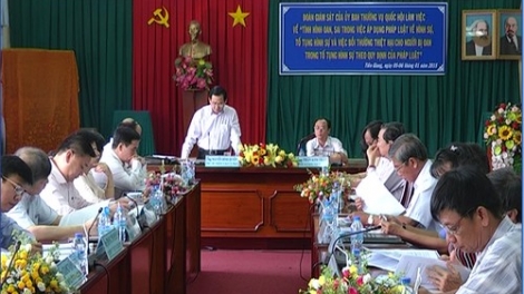 (VOV5) - Ngày 5/1, đoàn giám sát của Ủy ban Thường vụ Quốc hội do ông Nguyễn Đình Quyền, Phó Chủ nhiệm Ủy ban Tư pháp của Quốc hội làm Trưởng đoàn, tiến hành giám sát tại Tiền Giang về tình hình oan, sai trong việc áp dụng pháp luật về hình sự, tố tụng hình sự và việc bồi thường thiệt hại cho người bị oan trong hoạt động tố tụng hình sự theo quy định của pháp luật.