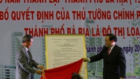 (VOV5) - Sáng nay (20/12), tại tỉnh Bà Rịa-Vũng Tàu diễn ra lễ kỷ niệm 20 năm thành lập thành phố Bà Rịa (1994 – 2014) và công bố Quyết định của Thủ tướng Chính phủ công nhận thành phố Bà Rịa là đô thị loại 2.
