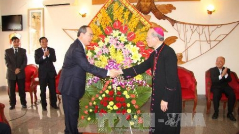 (VOV5) - Ngày 13/12, ông Nguyễn Thiện Nhân, Chủ tịch Ủy ban Trung ương Mặt trận Tổ quốc Việt Nam (MTTQ), đến thăm và chúc mừng Giáng sinh 2014 tại Tòa Giám mục Xuân Lộc và Ủy ban Đoàn kết Công giáo Đồng Nai.