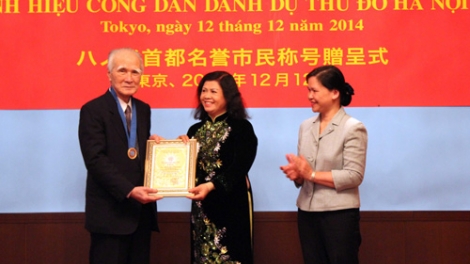 Trao danh hiệu công dân danh dự thủ đô Hà Nội cho cựu Thủ tướng Nhật Bản