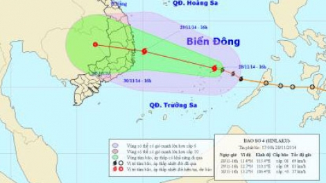 Theo Trung tâm dự báo khí tượng thủy văn Trung ương: Hồi 16h ngày 28/11, vị trí tâm bão số 4 ở vào khoảng 11,4 độ vĩ Bắc; 115,4 độ kinh Đông, cách đảo Song Tử Tây khoảng 80km về phía Đông. Sức gió mạnh nhất ở vùng gần tâm bão mạnh cấp 8, cấp 9 (tức là từ 62 đến 88km một giờ), giật cấp 10, cấp 11.