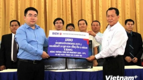 (VOV5) - Trưởng đại diện Ngân hàng Thương mại cổ phần Đầu tư phát triển Việt Nam (BIDV) tại Lào đã trao tặng Thông tấn xã Lào (KPL) 10 bộ máy tính và 2 máy in để phục vụ chuyên môn.