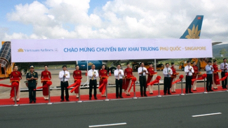 (VOV5) - Ngày 2/11, Ủy ban nhân dân tỉnh Kiên Giang phối hợp với Tổng Công ty Hàng không Việt Nam và Công ty Cổ phần Vinpearl tổ chức lễ khai khai trương đường bay mới Phú Quốc - Singapore.