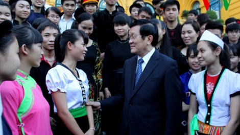 Chủ tịch nước Trương Tấn Sang gặp mặt 78 học sinh dân tộc thiểu số tiêu biểu