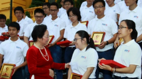 Phó Chủ tịch nước Nguyễn Thị Doan tiếp đoàn học sinh, sinh viên đoạt giải Olympic quốc tế