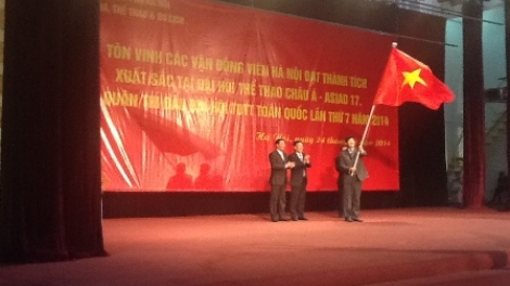 (VOV5) - Sáng 24/10, Sở Văn hóa, Thể thao và Du lịch Hà Nội tổ chức lễ xuất quân Đoàn Thể thao Hà Nội tham dự Đại hội Thể dục Thể thao toàn quốc lần thứ VII năm 2014.