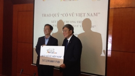 (VOV5) - Gần 320 triệu đồng là số tiền mà một số doanh nghiệp tài trợ, đóng góp cho “Quỹ Cổ vũ Việt Nam”, để động viên, khen thưởng các vận động viên Việt Nam đoạt huy chương tại Đại hội thể thao châu Á lần thứ 17 (ASIAD 17).