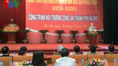 (VOV5) - Chiều nay (10/10), Công an thành phố Hà Nội tổ chức lễ khánh thành và gắn biển công trình chào mừng kỷ niệm 60 năm Giải phóng Thủ đô (10/10-1954-10/10-2014) cho công trình hội trường Công an thành phố Hà Nội.