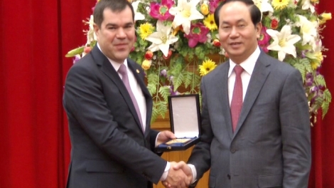 (VOV5) – Ngày 24/9, tại Hà Nội, Đoàn đại biểu cấp cao Bộ Công an Việt Nam do Bộ trưởng Trần Đại Quang làm Trưởng đoàn đã tiến hành hội đàm với Đoàn đại biểu cấp cao Ủy ban An ninh Quốc gia Cộng hòa Belarus do Chủ tịch Ủy ban An ninh Quốc gia Cộng hòa Belarus Vakulchik Valery làm trưởng đoàn.