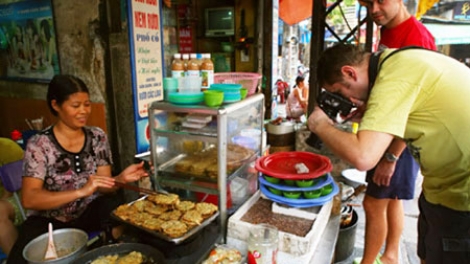 (VOV5) - Với chiều dài khoảng 300 mét, phố ẩm thực Hàng Buồm được bố trí 40 quầy hàng bán quà bánh, đồ uống truyền thống của Hà Nội và một số hàng ăn nhẹ Âu, Á.