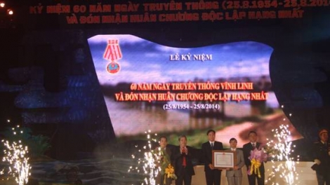 (VOV5)- Tối 25/8, huyện Vĩnh Linh, tỉnh Quảng Trị, tổ chức Lễ kỷ niệm 60 năm ngày truyền thống Vĩnh Linh và đón nhận Huân chương Độc lập hạng Nhất do Chủ tịch nước trao tặng.
