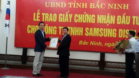 (VOV5)- Ngày 2/7, tỉnh Bắc Ninh đã trao giấy chứng nhận đầu tư cho Công ty TNHH Samsung Display để xây dựng nhà máy tại Khu công nghiệp Yên Phong - Bắc Ninh.