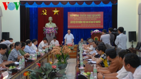 (VOV5) - Sáng nay (24/5), Đại tướng Trần Đại Quang, Bộ trưởng Bộ Công an, Trưởng ban chỉ đạo Tây Nguyên, có buổi làm việc với thường trực Ban chỉ đạo Tây Nguyên, Cục an ninh Tây Nguyên và Công an tỉnh Đắc Lắc, kiểm tra việc thực hiện chương trình công tác năm 2014.