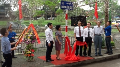 (VOV5) - Sáng 28/4, Ủy ban nhân dân phường Nghĩa Đô, quận Cầu Giấy, thành phố Hà Nội tổ chức lễ gắn biển tên phố Nguyễn Đình Hoàn.