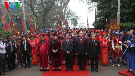 (VOV5) - Sáng sớm nay, 9/4, tức ngày 10/3 năm Giáp Ngọ, tại điện Kính Thiên trên đỉnh núi Nghĩa Lĩnh thuộc Khu di tích lịch sử quốc gia Đền Hùng, tỉnh Phú Thọ cùng 4 tỉnh đại diện cho 3 miền Bắc, Trung, Nam trang trọng tổ chức Lễ dâng hương tưởng niệm các Vua Hùng.