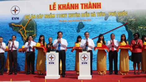 (VOV5) - Ngày 6-2, Tập đoàn Điện lực Việt Nam (EVN) tổ chức lễ khánh thành dự án cáp ngầm 110KV xuyên biển Hà Tiên - Phú Quốc tại xã Dương Tơ, huyện Phú Quốc, tỉnh Kiên Giang.