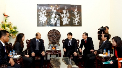 (VOV5) - Bí thư thứ nhất Trung ương Đoàn TNCS Việt Nam Nguyễn Đắc Vinh tiếp xã giao Hội Liên hiệp Thanh niên Campuchia, do anh Hun Many, Chủ tịch Hội làm trưởng đoàn, sang chuyến thăm và làm việc tại Việt Nam.